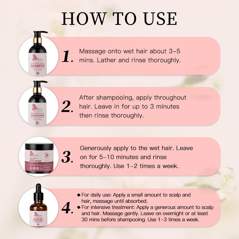 This powerful 4-step system is designed to cleanse, strengthen, nourish, and stimulate healthy hair growth from root to tip.